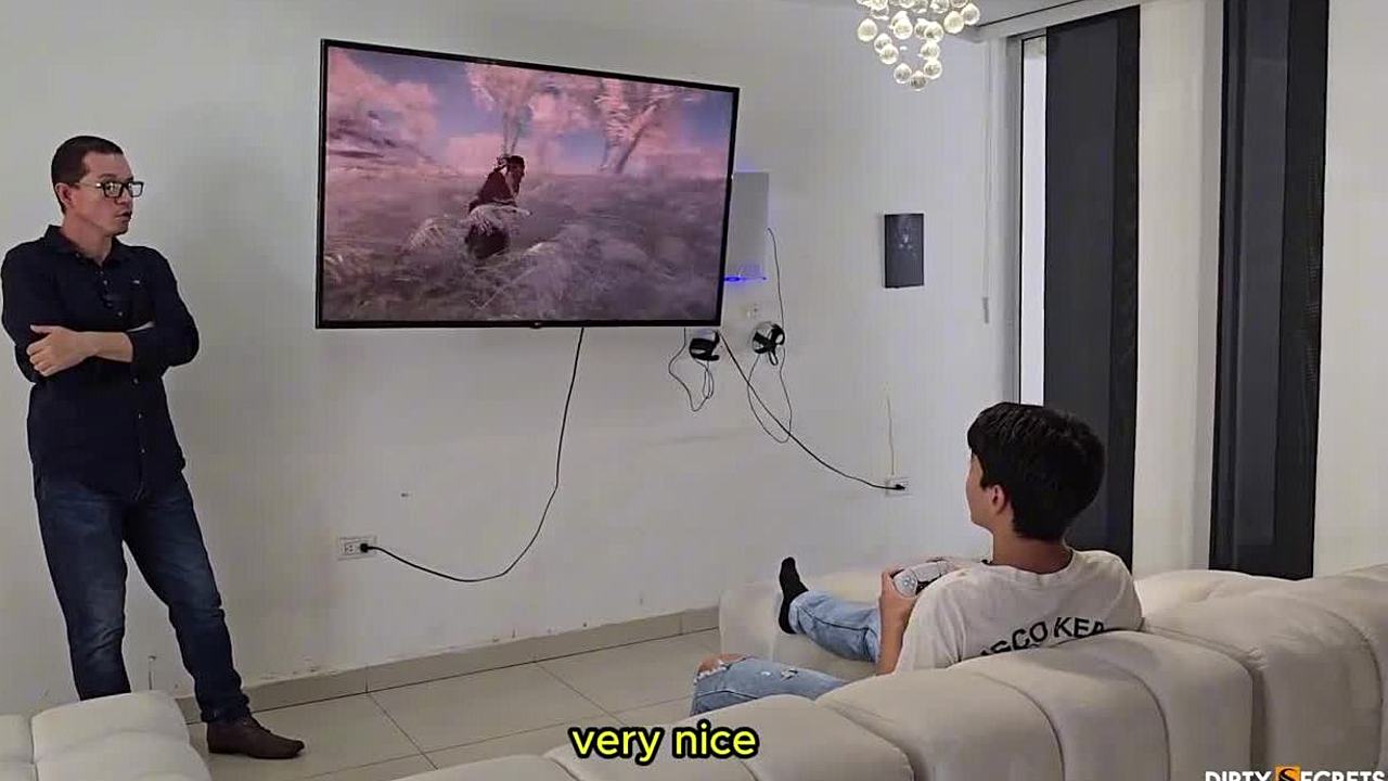 stepmother sneaks a quick blowjob with stepson the moment his wife steps out.