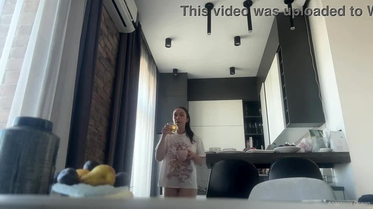 Milf Frina Cooks Nude in Kitchen, No Panties, Just Stockings and Heels