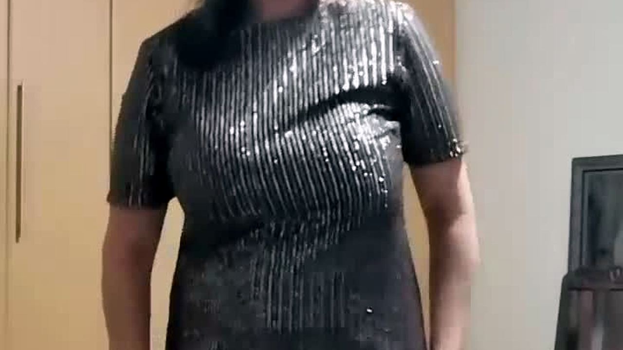 this femdom milf with big ass and huge boobs slowly strips down, teasing the wanker with dirty talk.