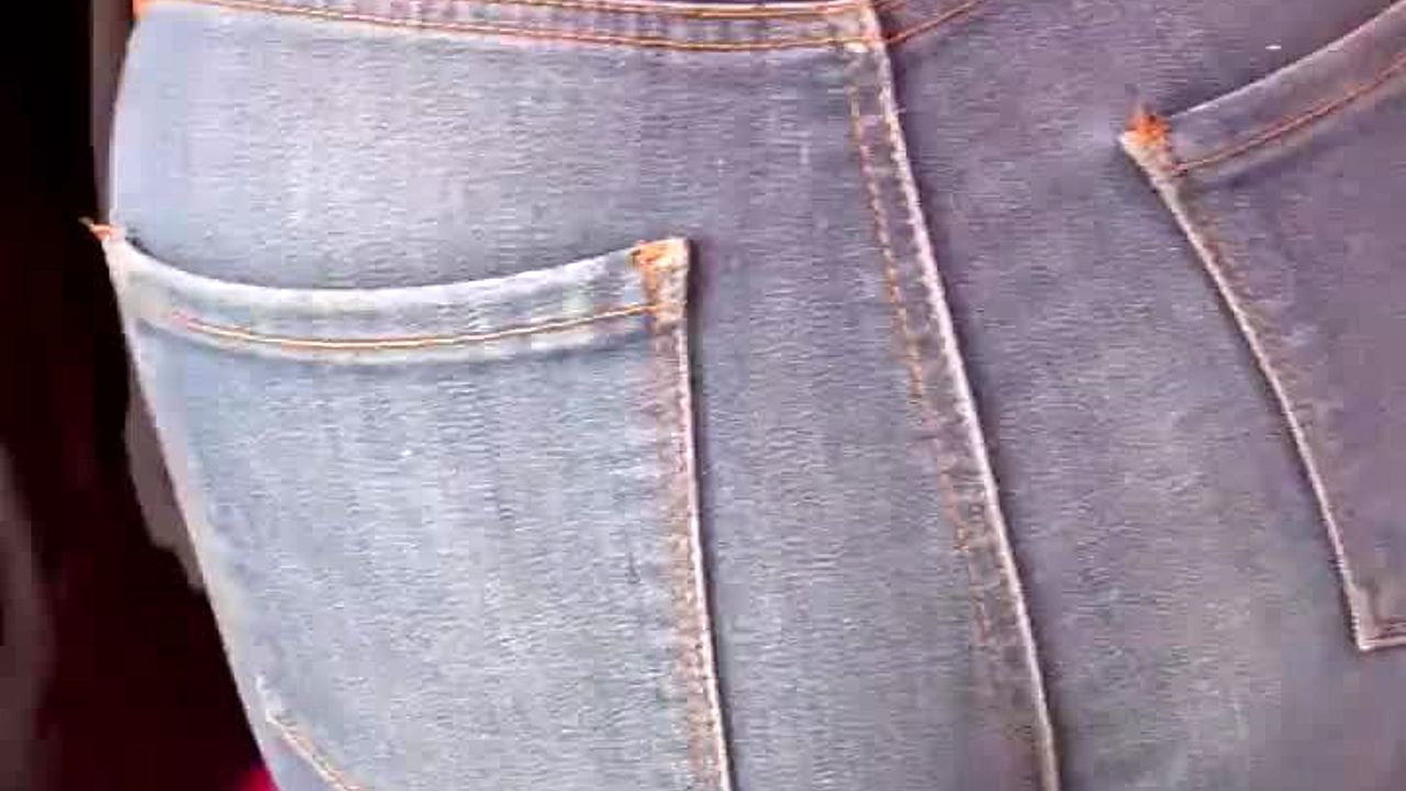 हॉट सेक्रेटरी टाइट जींस में टेस करती है, पैंटी लाइन पीक के साथ