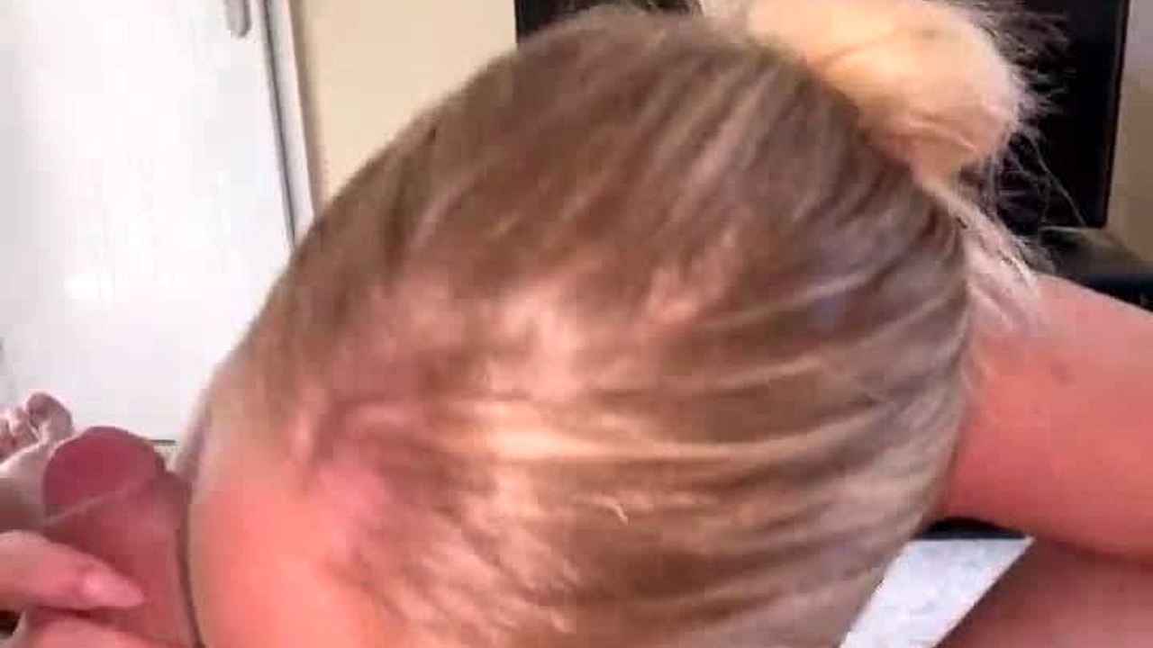 omg petite blondie sees her mommy's boyfriend's huge cock and just dives in to suck and ride it sloppy wet!! 😲💦