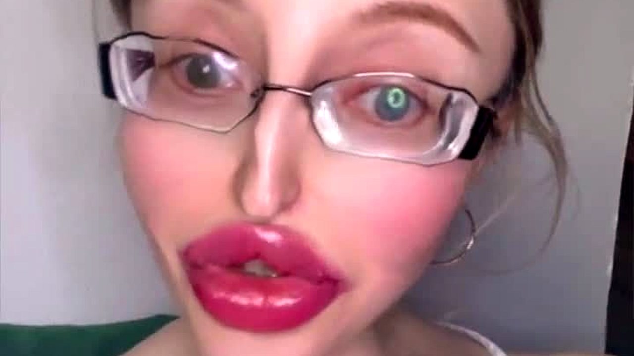 Blonde Russian With Huge Lips And Long Hair In Fetish Glasses!
